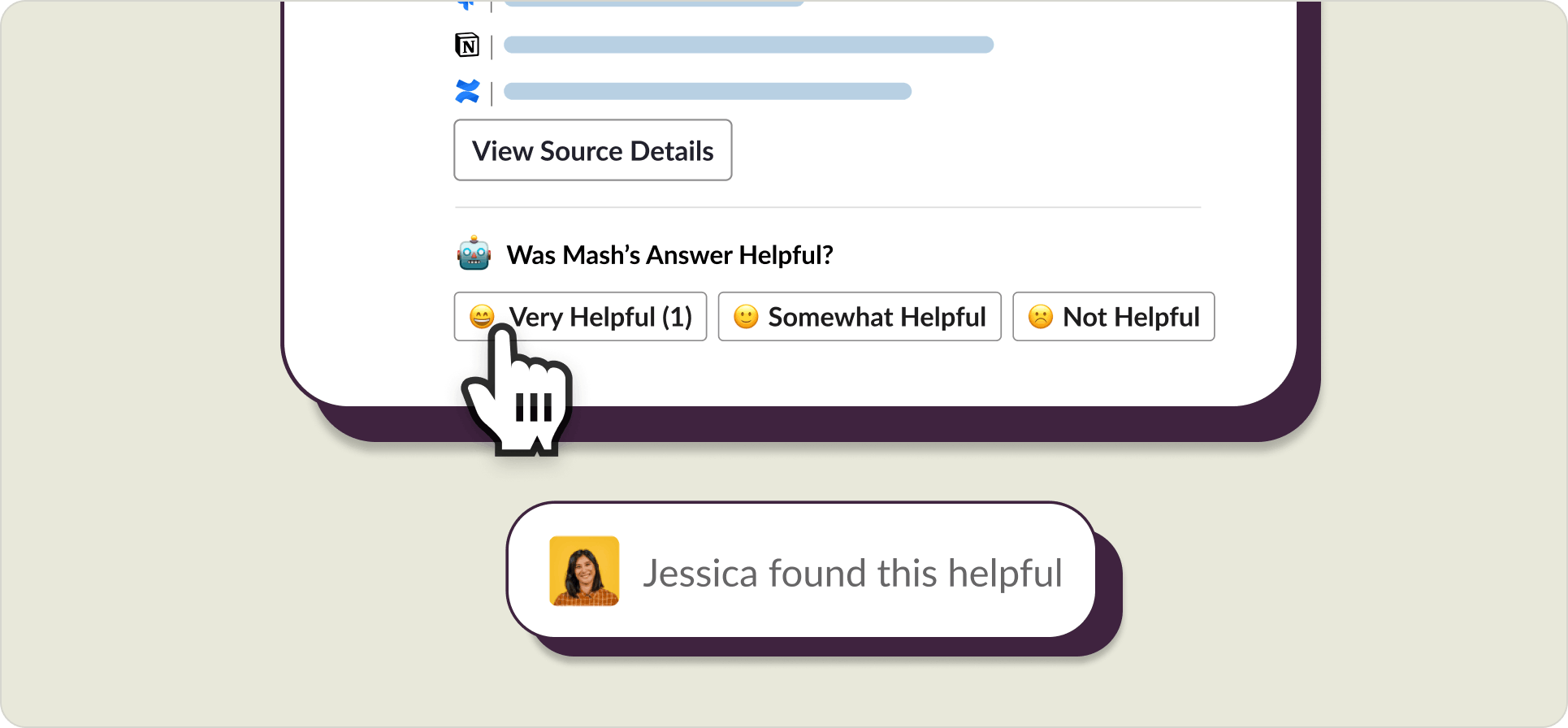 What made Mash especially effective was its feedback and learning loop. Team members could rate responses, flag inaccuracies, and have SMEs verify answers when needed. Verified responses were automatically captured and reused, continuously improving answer quality over time.